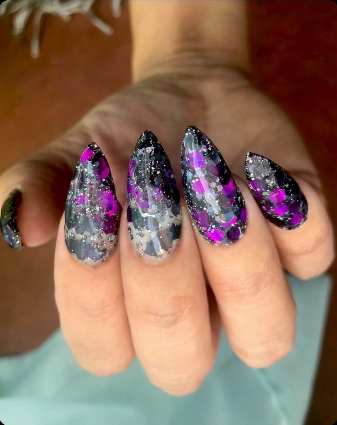 Mixture of Fine and Chunky Glitters: Purple/ Black / Holo